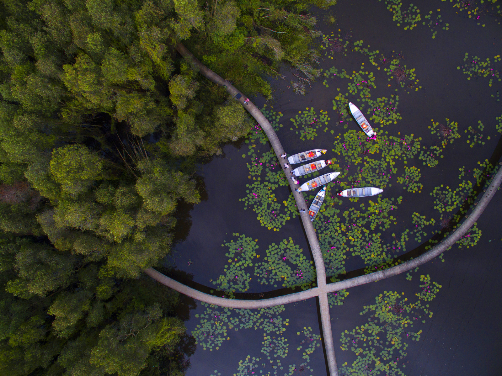 Cầu gỗ uốn lượn giữa rừng tràm là một trong những điểm độc đáo nhất tại Làng Nổi Tân Lập, mang lại trải nghiệm hoàn toàn khác biệt cho chương trình team building. Con đường gỗ kéo dài qua những mảng thực vật rậm rạp tạo nên không gian vừa bí ẩn vừa thú vị, rất phù hợp cho dạng hoạt động “theo hành trình”. Tại đây, các nhóm có thể tham gia thử thách nhỏ, tìm manh mối hoặc thực hiện trò chơi yêu cầu sự phối hợp khéo léo. Môi trường tự nhiên sống động giúp toàn đội có thêm nguồn cảm hứng mới mẻ.